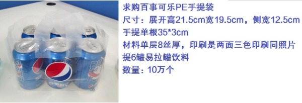 求購(gòu)易拉罐PE手提袋