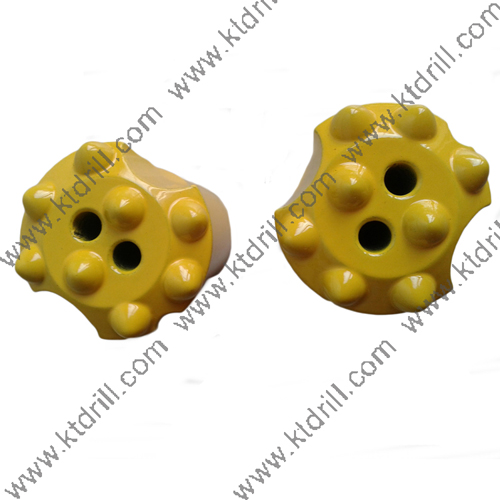 柱齒鉆頭又名球齒鉆頭,是與鑿巖機相配用的鉆鑿配件。柱齒釬頭常用最多的型號就是直徑32-42.柱齒鉆頭最堅硬的的地方就在上邊的柱頭,材質(zhì)是耐磨合金,下面的柄筒是鑄鋼的。主要訂貨的時候要根據(jù)客戶鉆桿的絲扣情況定絲扣的類型。柱齒釬頭使用壽命長,定位準(zhǔn)確,巖屑粗,粉塵低,耐用不需修磨等特點,與傳統(tǒng)的片狀釬頭相比鉆進速度快,能夠減少工人勞動和加快工程速度,