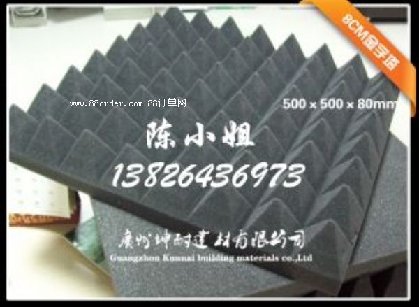 本公司大量出售“坤耐”牌吸音棉,金字塔吸音棉,保證質(zhì)量!此產(chǎn)品屬于環(huán)保吸音材料,大家可放心使用。金字塔廣泛應(yīng)用與錄音棚、錄音室、影音室、視聽室、鼓房、ktv,測(cè)音室、語音室、播音室、試音室、聲學(xué)試驗(yàn)室,會(huì)議廳、演播廳、影劇院等場(chǎng)合的室內(nèi)裝飾,以及機(jī)房消音、發(fā)電機(jī)組消音、音箱等吸音消音場(chǎng)所使用。該海綿無毒、無味、環(huán)保衛(wèi)生,是理想的室內(nèi)隔音/吸音、音頻反射材料。