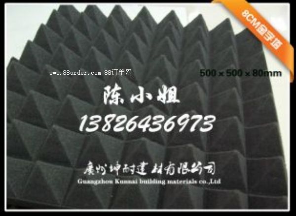 本公司大量出售“坤耐”牌吸音棉,金字塔吸音棉,保證質(zhì)量!此產(chǎn)品屬于環(huán)保吸音材料,大家可放心使用。金字塔廣泛應(yīng)用與錄音棚、錄音室、影音室、視聽室、鼓房、ktv,測(cè)音室、語音室、播音室、試音室、聲學(xué)試驗(yàn)室,會(huì)議廳、演播廳、影劇院等場(chǎng)合的室內(nèi)裝飾,以及機(jī)房消音、發(fā)電機(jī)組消音、音箱等吸音消音場(chǎng)所使用。該海綿無毒、無味、環(huán)保衛(wèi)生,是理想的室內(nèi)隔音/吸音、音頻反射材料。