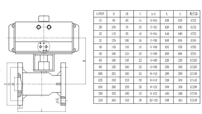 q641s氣動(dòng)pvc法蘭球閥連接尺寸