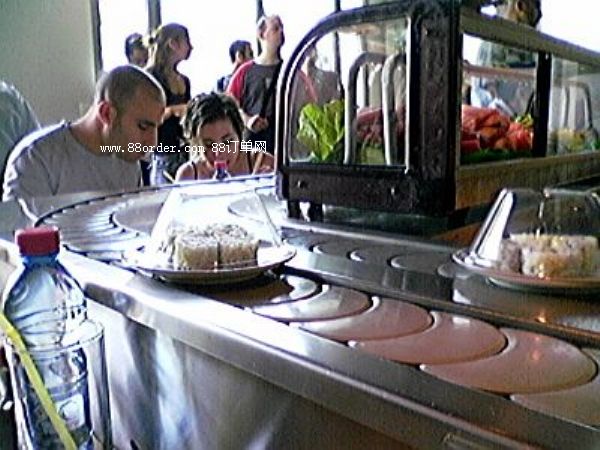 回轉(zhuǎn)設(shè)備可根據(jù)餐店使用面積及客戶要求進(jìn)行設(shè)計(jì),我公司設(shè)備傳動(dòng)系統(tǒng)采用密封式設(shè)計(jì),輸送連帶結(jié)構(gòu)嚴(yán)謹(jǐn),運(yùn)行安全平穩(wěn),符合食品衛(wèi)生要求?梢怨(jié)省人力物力,客人在各自的座位上可隨意選擇擺放在輸送帶上的食物,無(wú)需服務(wù)員送上,同樣回轉(zhuǎn)輸送設(shè)備以其美觀、時(shí)髦、新奇、動(dòng)感吸引著更多的顧客,使青少年所青睞。