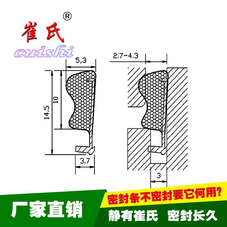 本系列產(chǎn)品 為高性能包覆發(fā)泡密封條,引進(jìn)先進(jìn)生產(chǎn)設(shè)備自主開發(fā)研制而成。該產(chǎn)品是在軟軟的密封材料外包覆一層防水、耐磨、抗老化的復(fù)合膜,延長了密封材料的壽命,它可直接用于各種門窗的縫隙密封,適合各種高級家具、高檔門窗系統(tǒng)密封、隔音、減震的性能頗為突出。