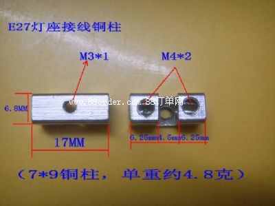 [訂單]銅接線柱,方形7*9銅柱,燈頭燈座接線銅柱