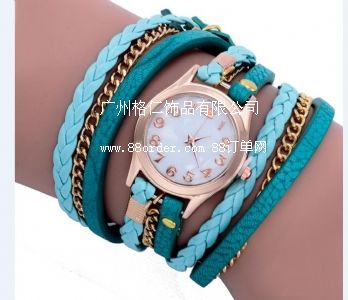 產品名稱:手鏈表 時尚 采購量:1000pcs 產品描述:編織手帶,表殼合金材質,pc機芯